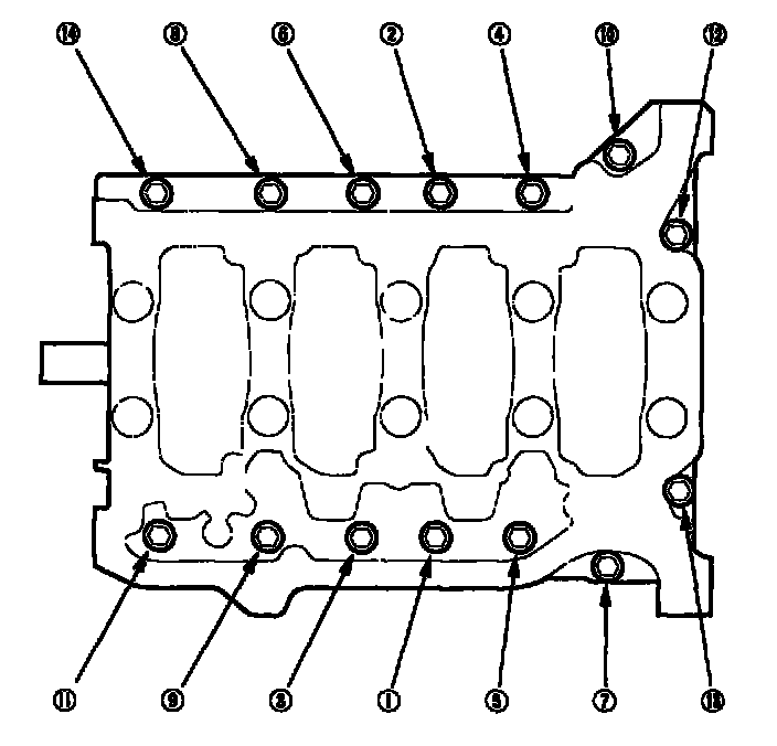 Tighten the 8 mm bolts in sequence to 22 Nm (2.2 kgf-cm, 16 ft. lbs.).