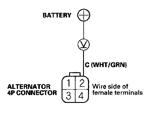 4. Measure the voltage between alternator 4P connector terminal No. 2 and the positive terminal of the battery.