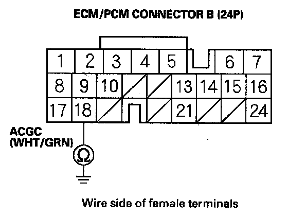 7. Check for continuity between ECM/PCM connector terminal B18 and body ground.