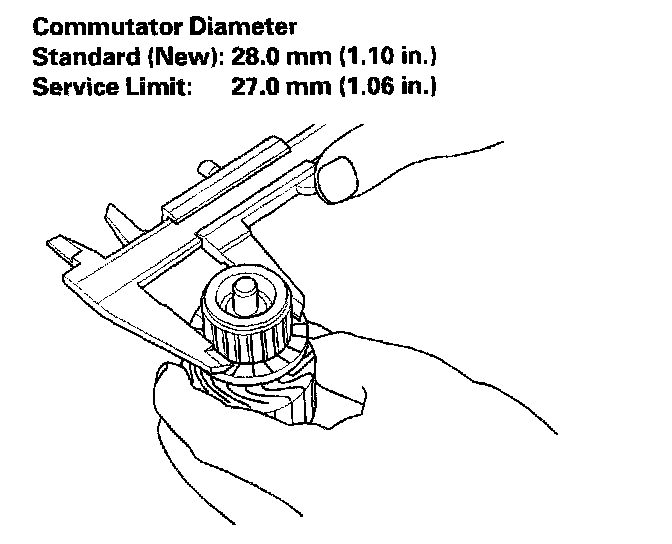 5. Check the commutator diameter. If the diameter is out of the service limit, replace the armature.