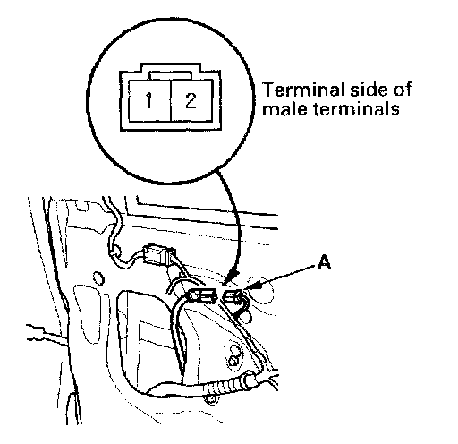 2. Disconnect the 2P connector (A) from the passenger's power window motor.