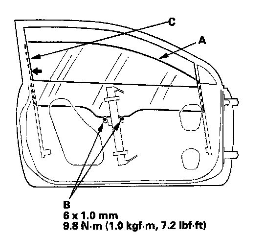 4. Push the glass against the channel (C), then tighten the glass mounting bolts.