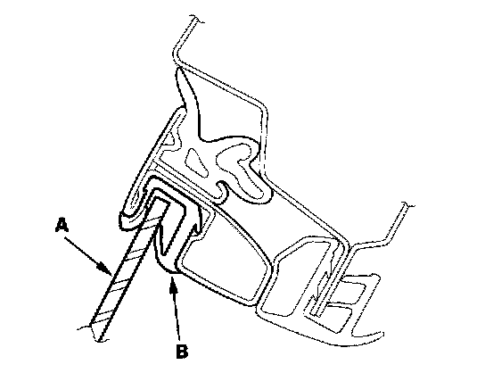6. Raise the glass fully, and check for gaps. Check that the glass (A) contacts the glass run channel (B) evenly.