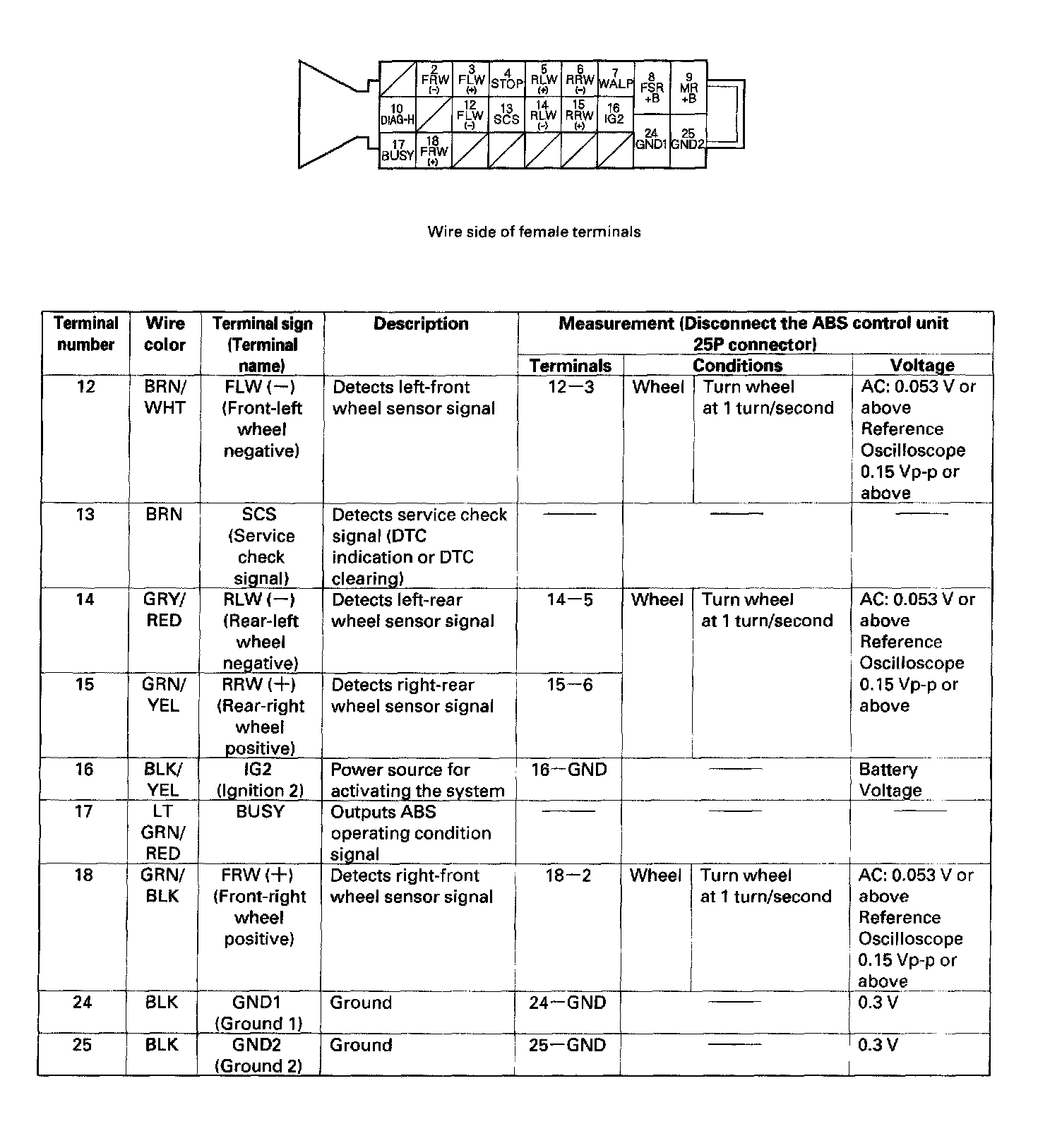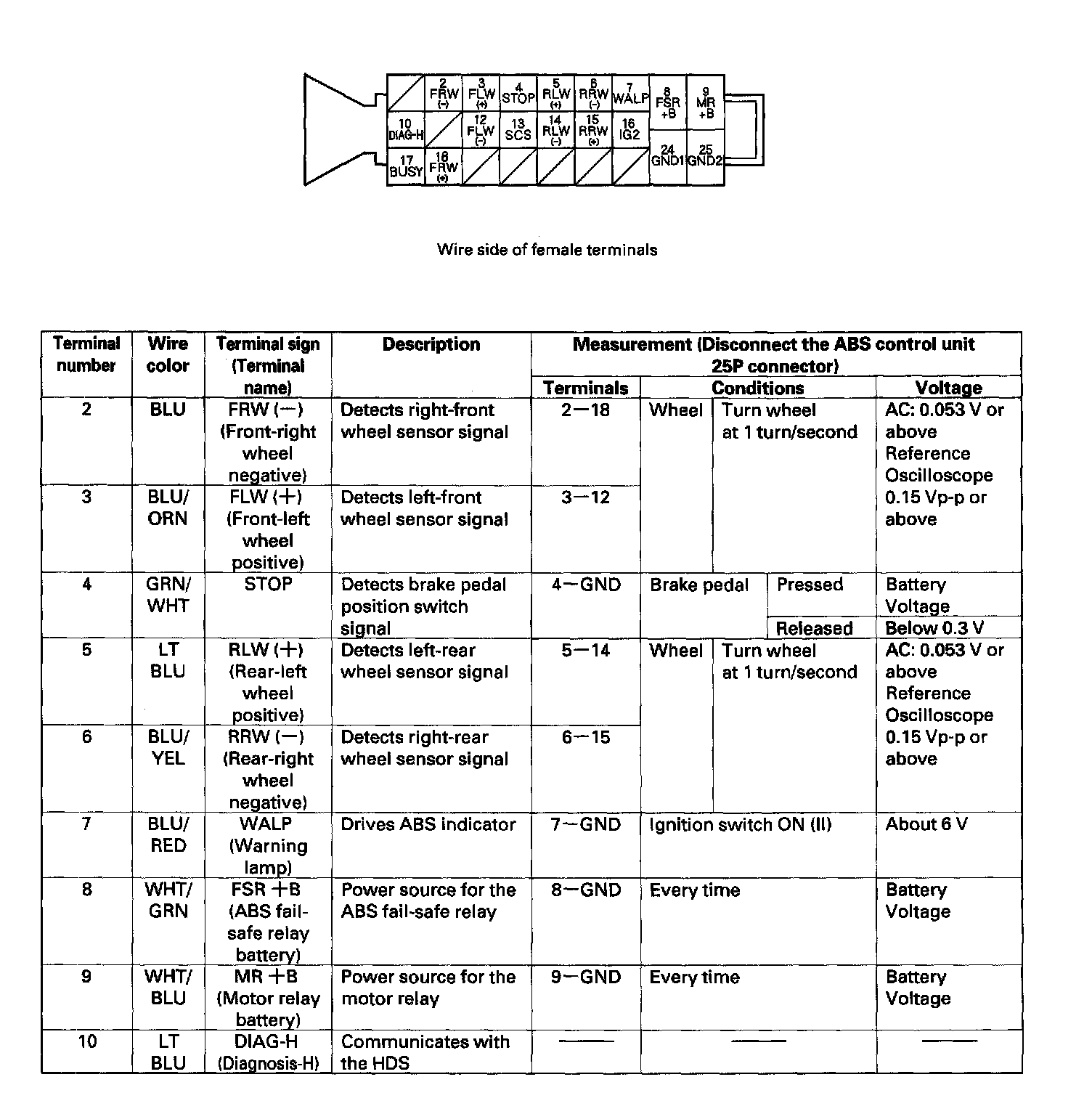 Control Module Pinout Values, ABS