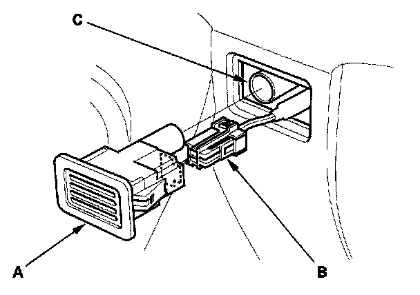 In-car Temperature Sensor Replacement1. Remove the in-car temperature sensor (A) from the dashboard, then disconnect the 2P connector (B) and the air hose (C). Be careful not to damage the sensor or the dashboard.