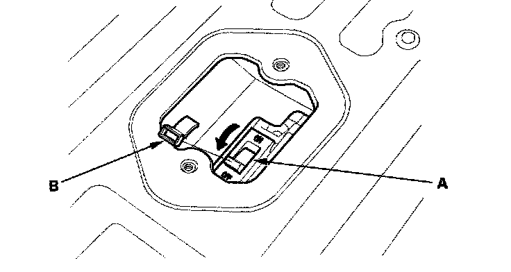 4. Turn the battery module switch (A) OFF, then install the locking cover (B).