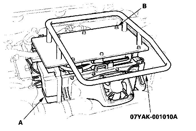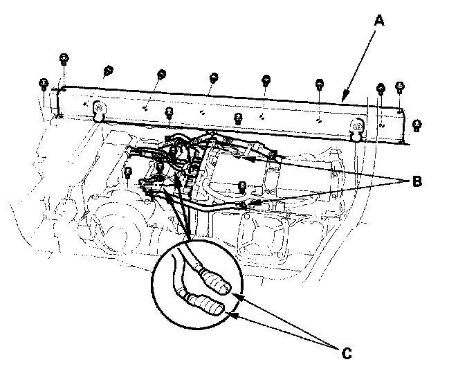 12. Remove the battery module air duct mounting bolt (A), then push the duct forward.