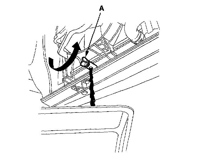 5. Remove the drain bolt (A) from the rear side of the engine block.