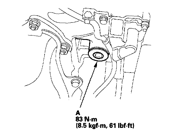 9. Loosen the air bleed bolt (A) in the water outlet, then pour Honda All Season Antifreeze/Coolant Type 2 into the radiator to the bottom of the filler neck. Do not let coolant spill on any electrical parts or the paint. If any coolant spills, rinse it off immediately.