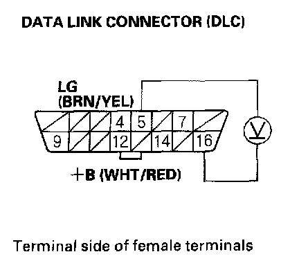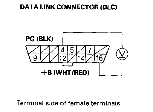1. Measure voltage between DLC terminal No.16 and body ground.