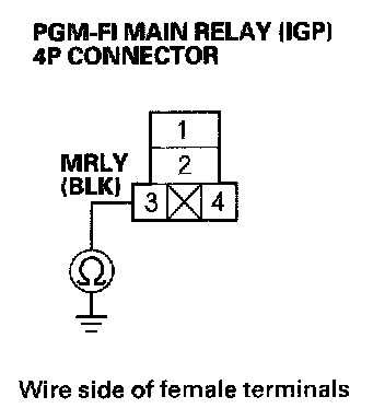 3. Check for continuity between body ground and PGM-FI main relay (IGP) 4P connector terminal No.3.