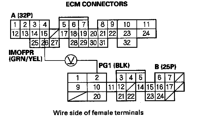 12. Reconnect ECM connector A (32P) and the PGM-FI main relay (FUEL PUMP) connectors.
