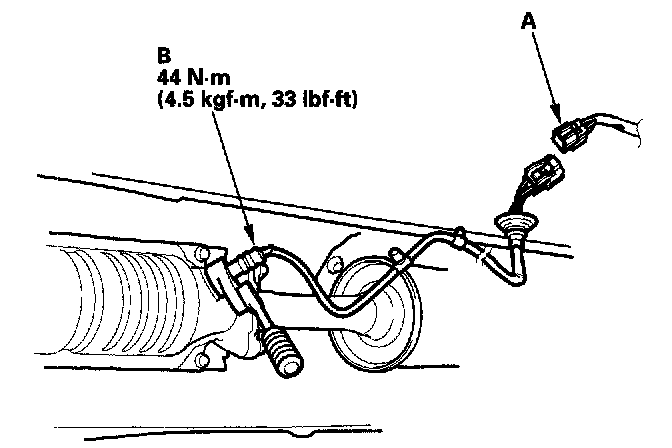 1. Disconnect the third HO2S 4P connector (A), and remove the third HO2S (B).