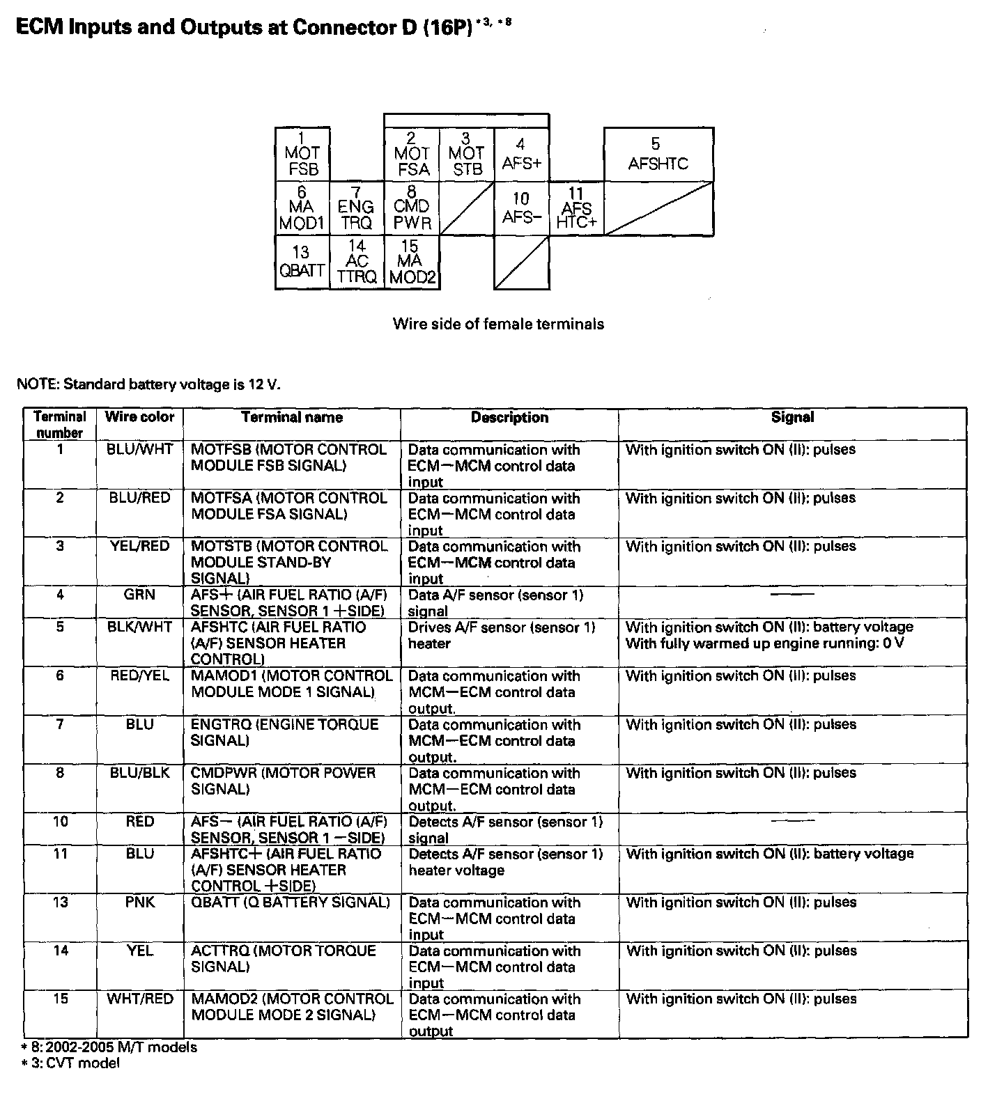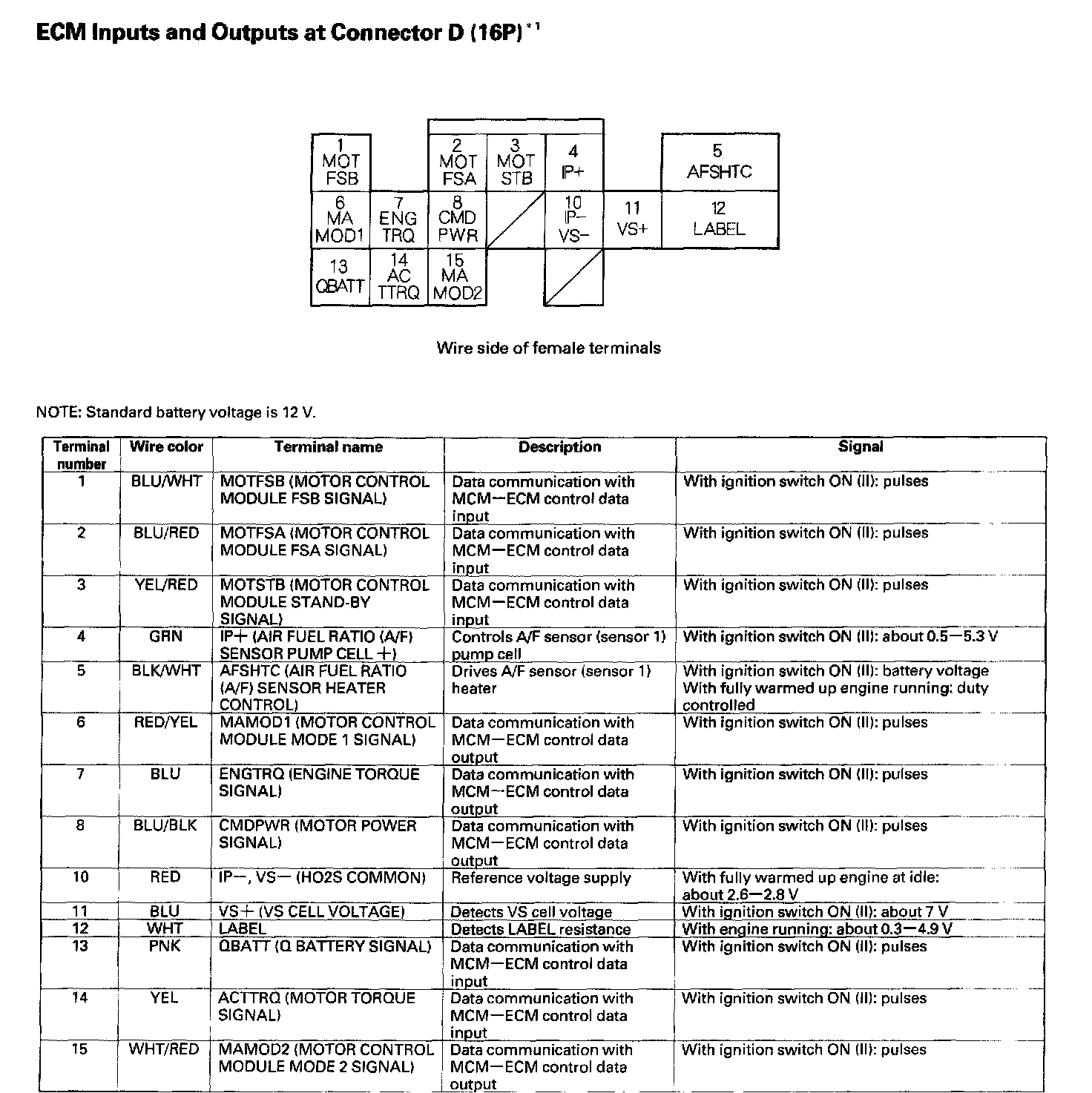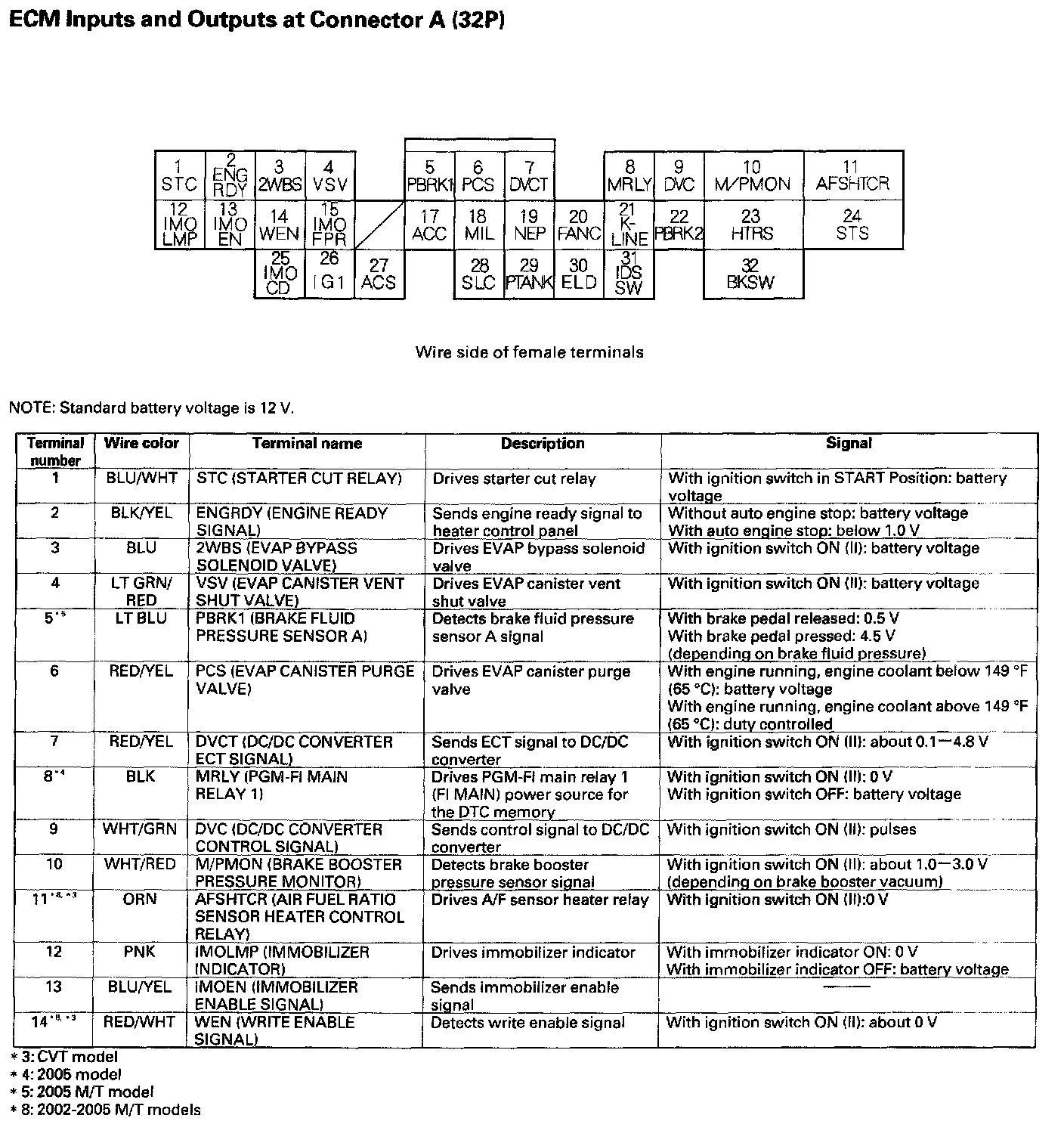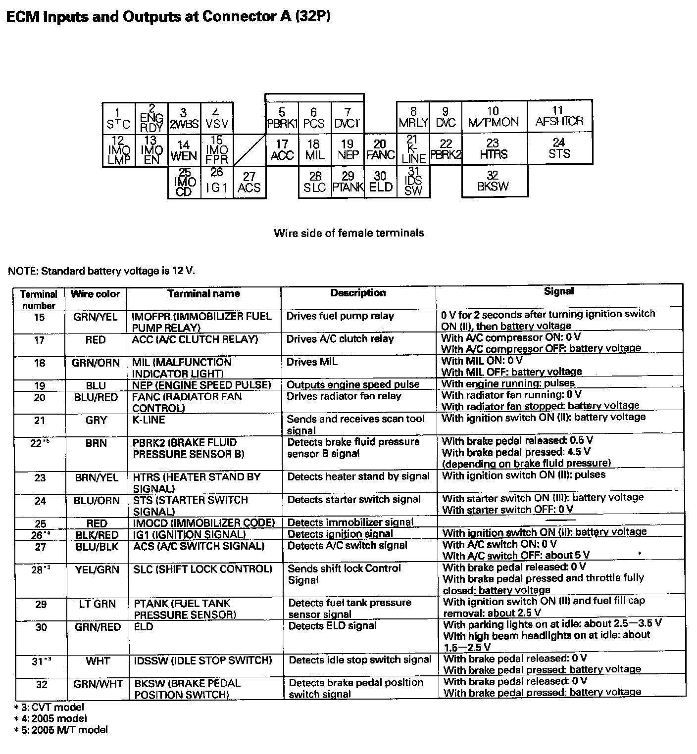 ECM Inputs And Outputs Connector A (32P) Part 2: