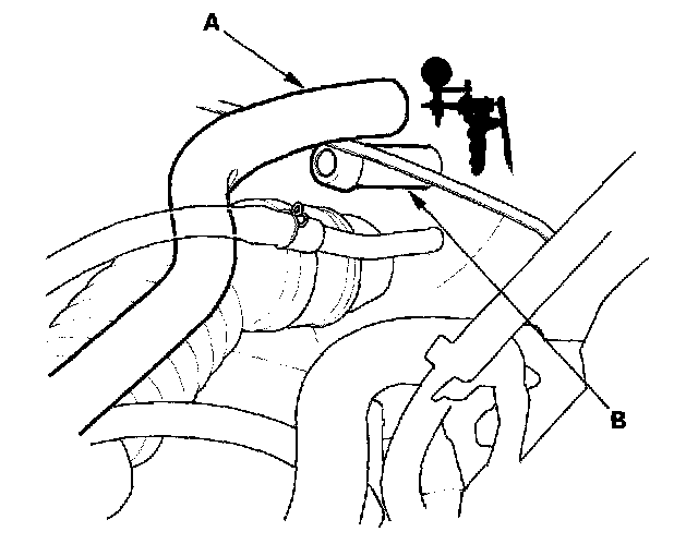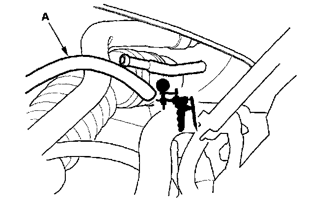 5. Apply vacuum to the fuel tank vapor recirculation tube (A).