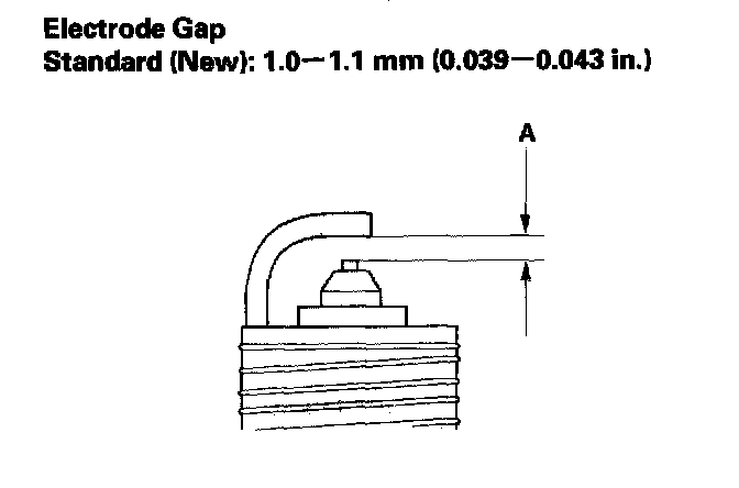 4. Do not adjust the gap (A) on iridium tip plugs; replace the spark plug if the gap is out of specification.