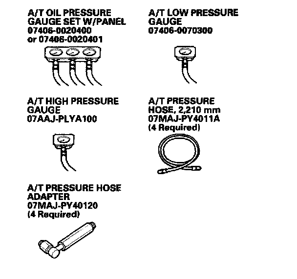 ^ A/T oil pressure gauge set 07406-0020400 or 07406-0020401