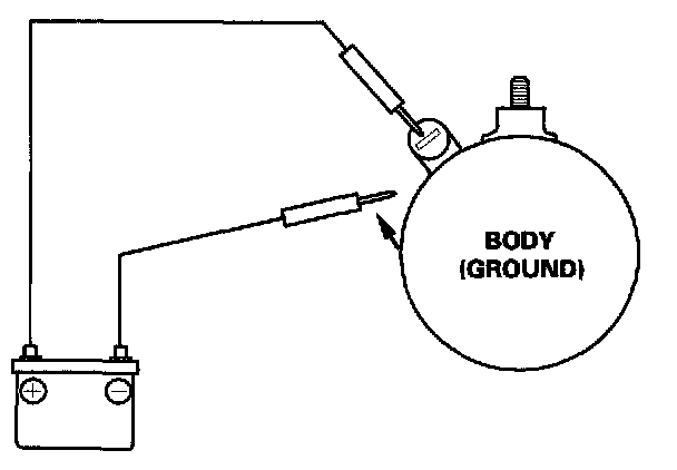 2. Connect the battery to the starter as shown using as heavy a wire as possible (preferably equivalent to the wire used for the vehicle). If the starter pinion moves out, it is working properly.