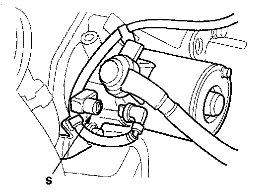 6. Make sure the transmission is in Neutral, then disconnect the BLK/WHT wire from the starter solenoid S terminal. Connect a jumper wire from the battery positive terminal to the solenoid terminal.