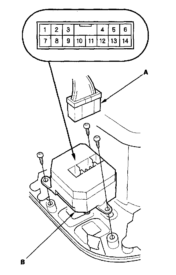 2. Disconnect the 14P connector (A) from the power window master switch (B).