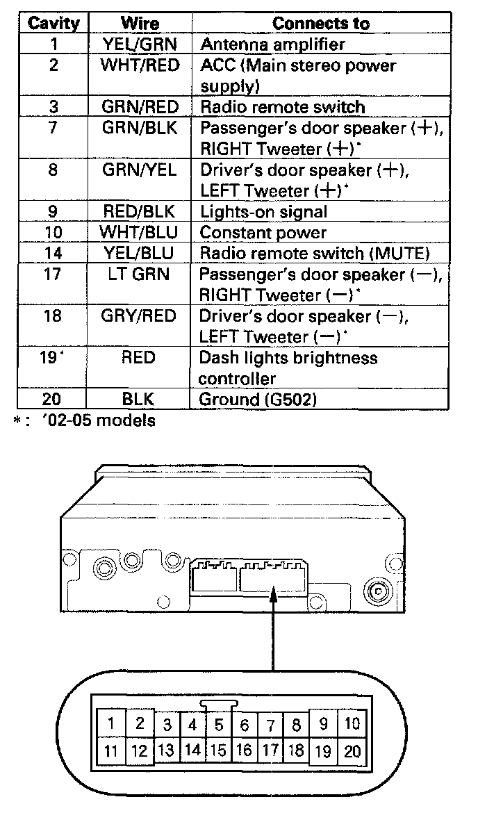 When replacing an audio unit connector, match the wires to the cavities listed in the above table. Cavities 4, 5, 6, 11, 12, 13, 15 and 16 are not used.