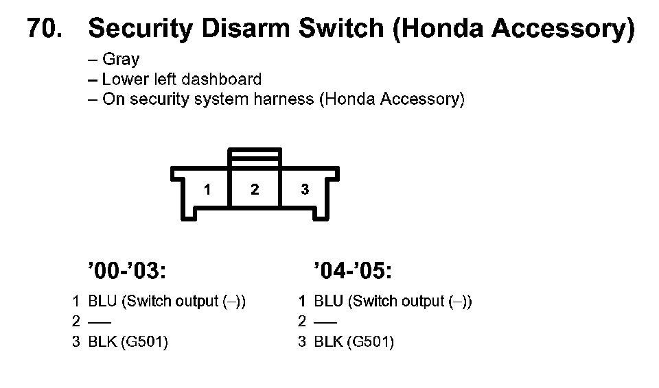 70. Security Disarm Switch (Honda Accessory):