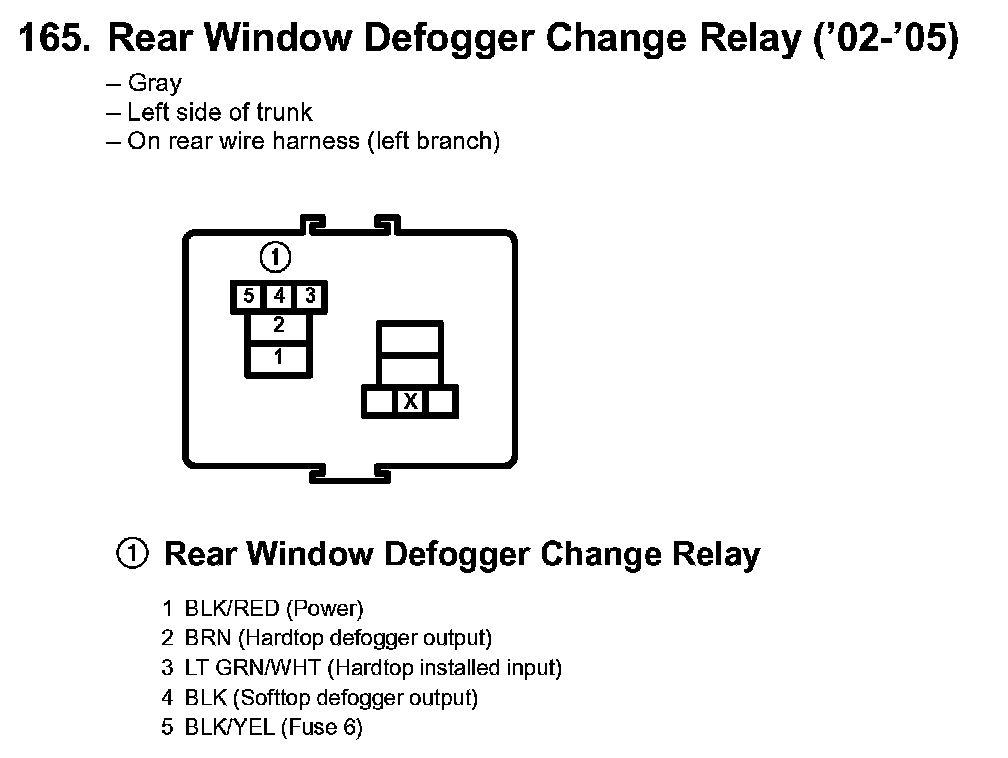 100. High Beam Cut (Canada) And Intermittent Wiper Relay ('00-'01) And Rear Window Defogger Relays ('02-'05):