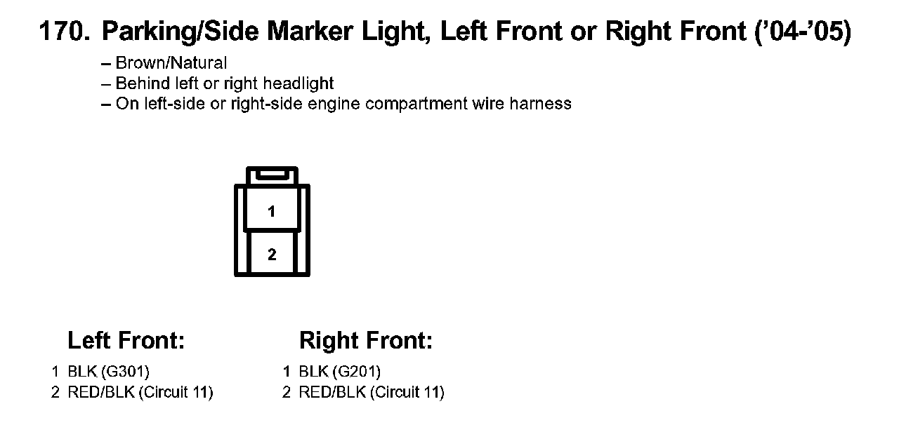 170. Parking/Side Marker Light, Left Front Or Right Front: