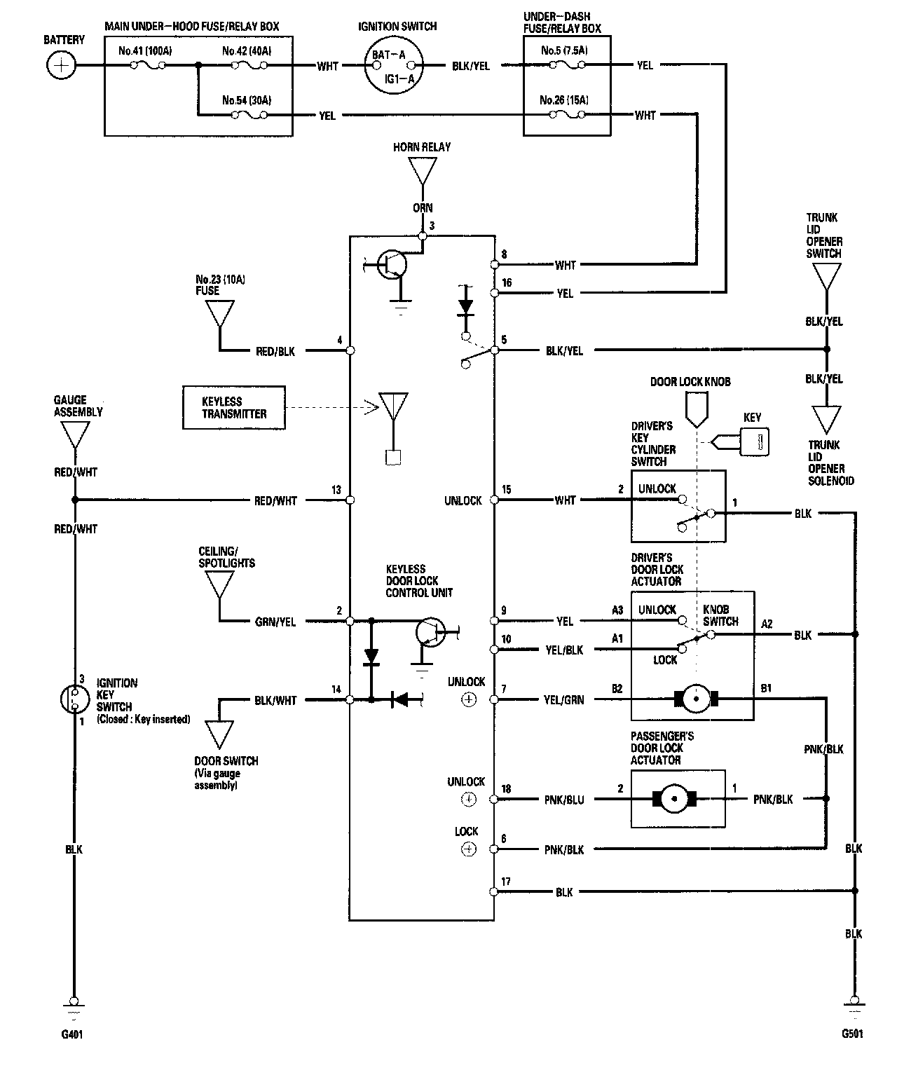 Keyless/Power Door Lock System - Circuit Diagram: