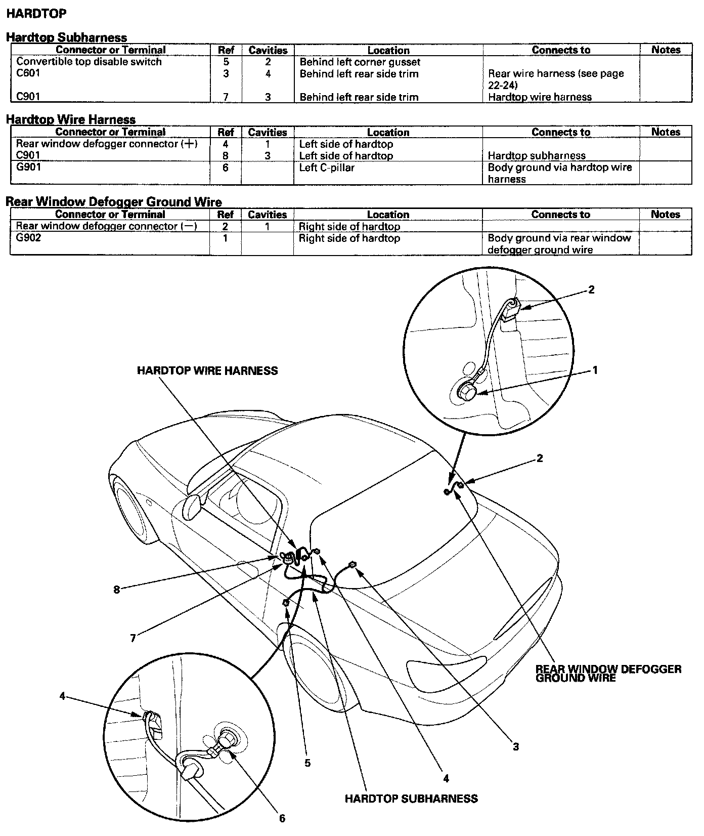 Hardtop Subharness/Hardtop Wire Harness/Rear Window Defogger Ground Wire: