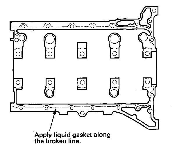 NOTE: Do not install the parts if 4 minutes or more have elapsed since applying liquid gasket. Instead, reapply liquid gasket after removing old the residue.