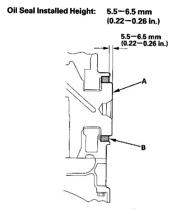 18. Measure the distance between the crankshaft (A) and oil seal (B).