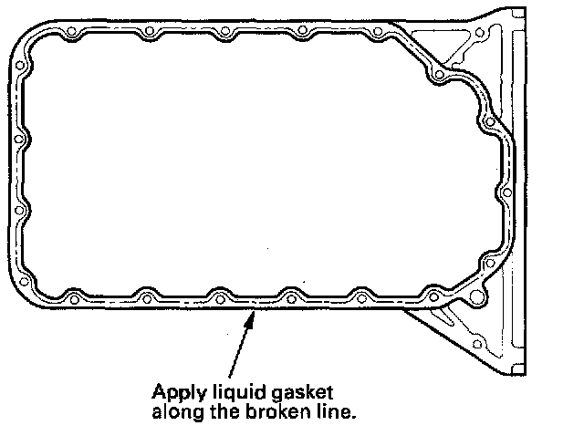 10. Apply liquid gasket, P/N 08717-0004, 08718-0001, 08718-0003, or 08718-0009, evenly to the cylinder block mating surface of the oil pan. Install the oil pan.