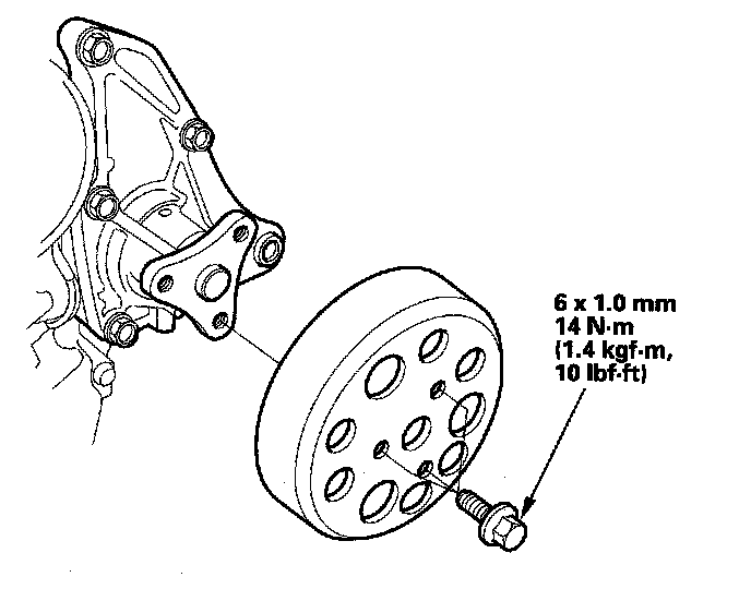 13. Install the crankshaft pulley, and tighten the bolt to 245 Nm (25.0 kgf-m, 181 ft. lbs.). Do not use an impact wrench.