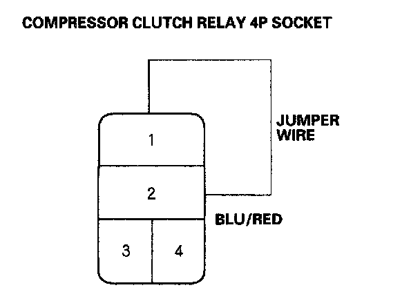 5. Connect the No.1 and No.2 terminals of the compressor clutch relay 4P socket with a jumper wire.