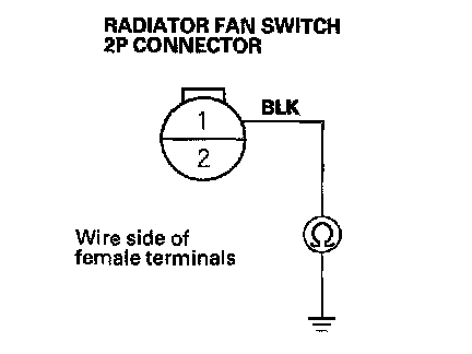 Radiator Fan Switch Circuit Troubleshooting (Open)1. Disconnect the radiator fan switch 2P connector.