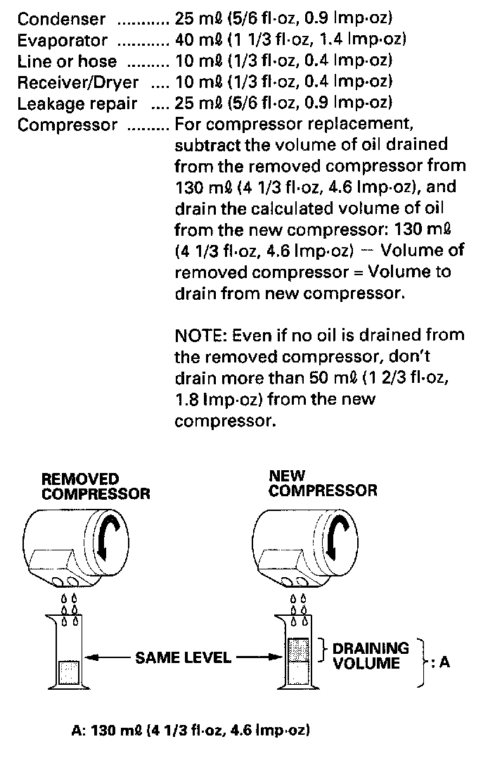 Add the recommended refrigerant oil in the amount listed if you replace any of the following parts.