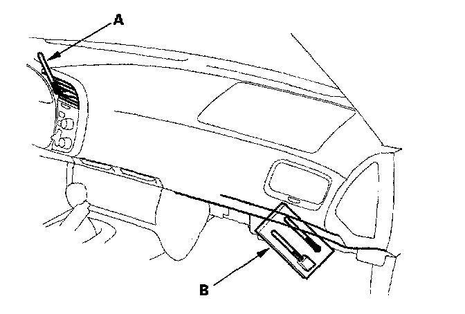 4. Insert a thermometer (A) in the center vent, and place another thermometer (B) near the blower unit.