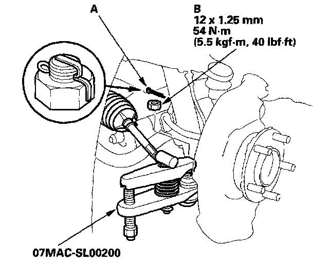 11. Disconnect the tie-rod ball joint from the knuckle using the special tool.