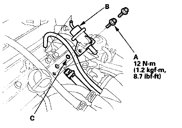 4. Apply clean engine oil to a new O-ring (C), and carefully install it into its proper position.