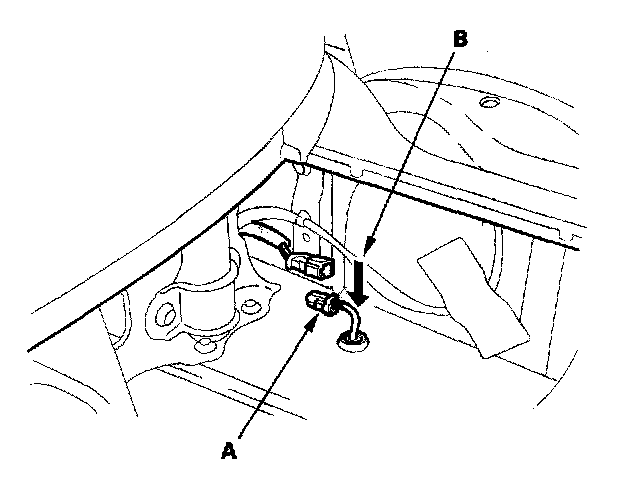 8. Disconnect both ABS rear wheel sensors 2P connectors (A), and push the connectors out (B).