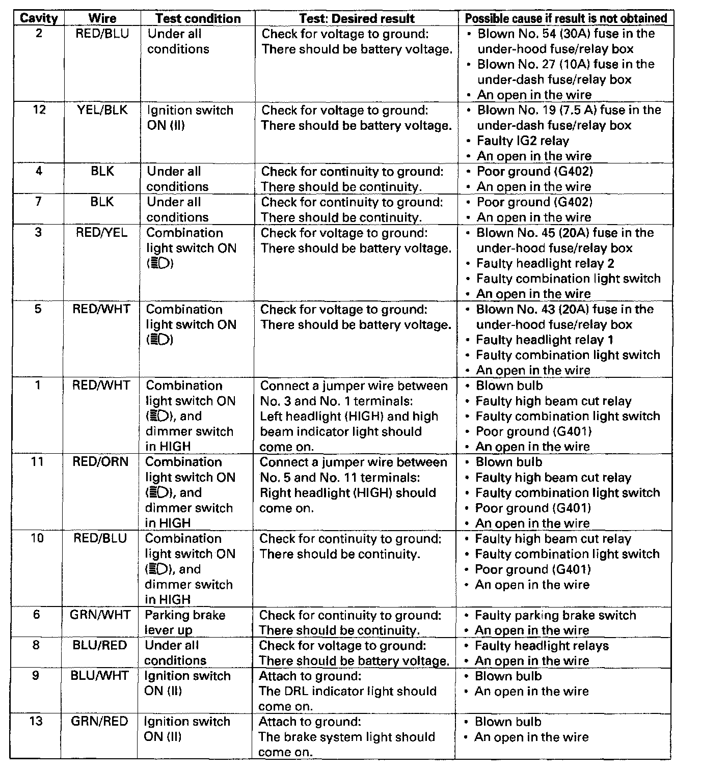 Daytime Running Lamp Control Unit: Testing and Inspection