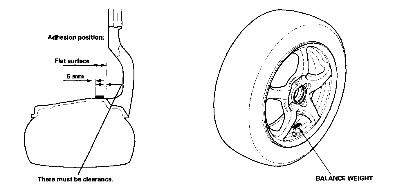 The wheels on this model are not designed to mount the balance weight on the outer side of the wheel. Instead, mount the self-adhesive balance weight on the inner side of the wheels. Note the following service tips and install the weights securely.