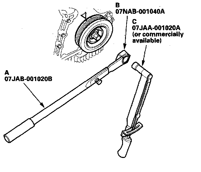 2 Tighten the bolt with a torque wrench and heavy duty 19 mm socket (C).