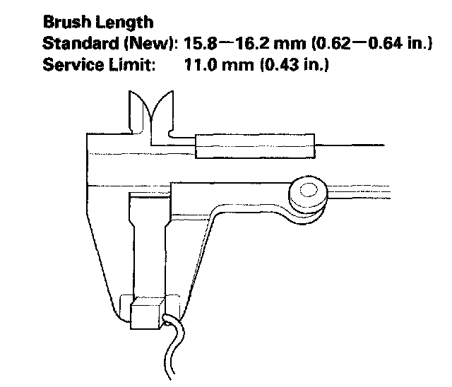 11. Measure the brush length. If it is not within the service limit, replace the brush holder assembly.