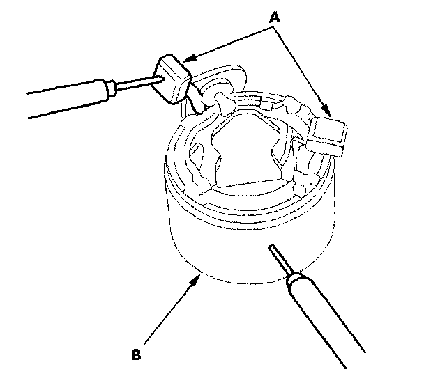 13. Check for continuity between each brush (A) and the armature housing (B). If there is continuity, replace the armature housing.