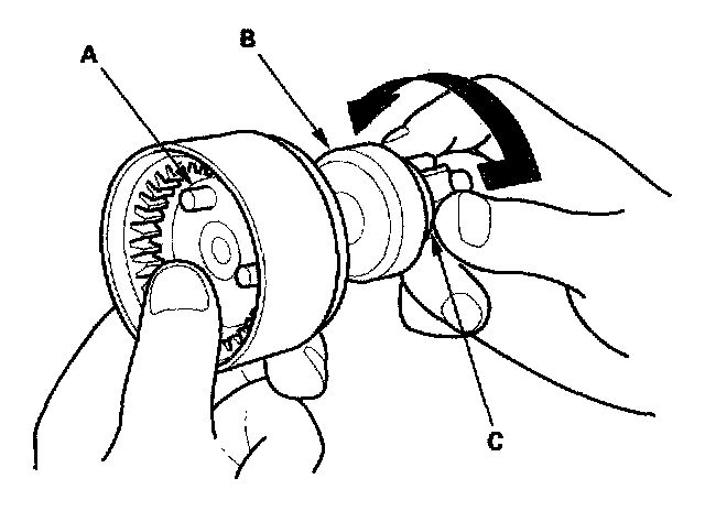 21. If the starter drive gear (C) is worn or damaged, replace the overrunning clutch assembly; the gear is not available separately.