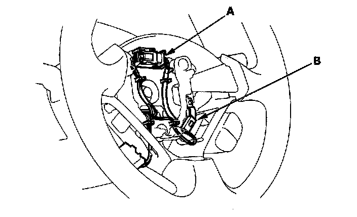 2. Disconnect the cruise control switch connector (A) and horn switch connector (B).
