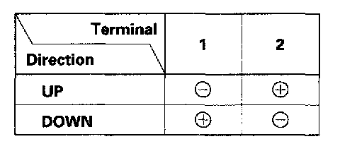 3. Test the motor in each direction by connecting battery power and ground according to the table. When the motor stops running, disconnect one lead immediately.