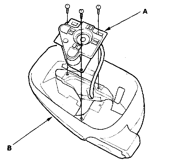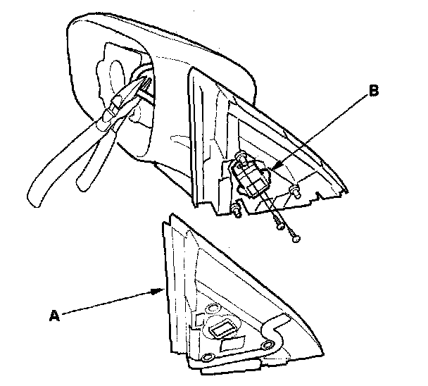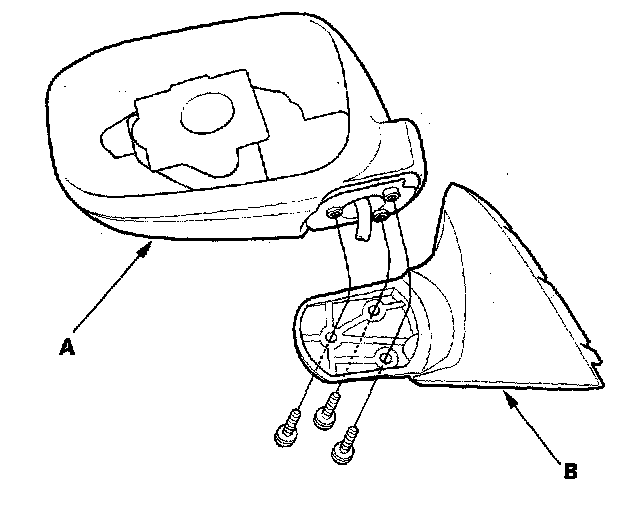 7. Remove the three screws, and separate the mirror housing (A) from the bracket (B).